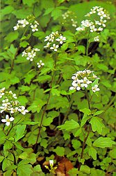ヤマタネツケバナ (アブラナ科) 沢合いの流れのほとりにはえる多年草。 タネツケバナより大形で、茎の高さ20〜40cm、 葉は羽状に裂け、側小葉は1〜4対、 頂小葉は特に大きく長さ1〜4cm (タネツケバナ0.3〜1.5cm)、 タネツケバナより大きな白色十字状花をつける。 春の山菜として特に珍重する地方がある。