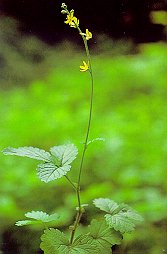 ヒメキンミズヒキ (バラ科) 花は小さく径5〜7mmで、雄しべの数は 5〜6本、果実は径2mmほどである。 小葉は3〜5枚で先端は鈍い。 一方キンミズヒキは、花の径が8〜10mmで、 雄しべの数が10〜13本、果実は径4mm ほどである。また小葉が5〜11枚で、 先端が尖っていることからも本種と 区別される。