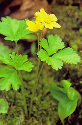 コキンバイ (バラ科) 山地の陰地にはえる小形の多年草。 高さ10〜20cm、根茎は地中をはい、 先端に2〜3葉を束生する。頂小葉は きれこみが深い。日本名は小金梅で、 キンバイソウに似ていて草体が小さいからいう。
