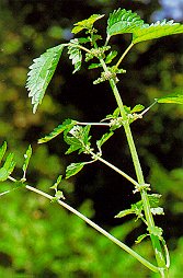 アオミズ (イラクサ科) 山の湿ったところにはえる軟らかい1年草。 直立して高さ30〜50cm、液質で淡緑色、 葉は対生、葉柄の基部には淡緑色の花が かたまってつく。 雄花と雌花が混生し、雄花はがく2と雄しべ2、 雌花はがく片3と雌しべ1からなる。 果実は赤褐色の小点がある。