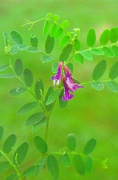 オオバクサフジ (マメ科) 山里や野にはえる多年草。茎は稜があって ねたり、ものにからまったりする。葉は 4〜10小葉からなり、卵形、洋紙質で 幅15〜30mm、網状脈は下面隆起する。 日本名は大葉草藤。 学名のプセウドは「にせもの」で、「もどき」に あたることばであって、学名にも日本名にも あり、命名する際欠かせないことばである。