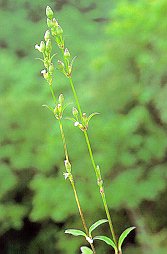 フシグロ (ナデシコ科) 路傍にはえる多年草。茎は直立して無毛、 高さ40〜90cm、花は1〜3cmの柄によって 葉のもとに数個ずつつく。花弁は小さく白色、 先端は2裂する。 日本名節黒は、節の部分が黒紫色なのによる。 別名は薩摩人参。昔、商人が本種のひげ根を 薩摩人参にまぜて売っていたので名づく。 効用のある竹節人参は薩摩人参として世に 出たので、結局、フシグロを薩摩人参(竹節人参) といつわって売ったものである。