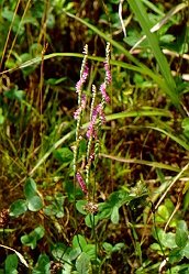 穂に、小さなピンク色の花をらせん状に