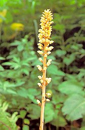 オニノヤガラ (ラン科) 日本名鬼の矢幹(鬼の矢柄)または カミノヤガラ(神の矢柄)は、真直な茎を 鬼または神の使用する矢になぞらえたもの。 別名ヌスビトノアシ(盗人の足)は、根茎を 盗賊の足にたとえたものである。