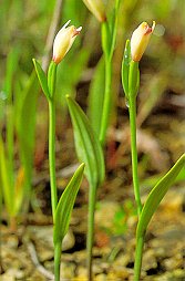 ヤマトキソウ (ラン科) 日本名山朱鷺草。山にはえる朱鷺草の意。 淡い桃色をした花の色が「トキ」に 似ているから。 国際保護鳥であるトキはミドリとキンの 2羽よりいなくなったが、中国との交流が 奇跡をうんで、佐渡の空にトキが舞うことを 祈りたい。