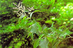 ウラジロタデ (タデ科) 元来は高山の砂礫地や低地の火山灰地にはえる、 雌雄異株の多年草。茎は太くて曲がり、枝を分け、 高さ30〜100cm、下向きの毛が密生。 葉は卵形で先はとがる。下面に密毛があって白く、 質は厚い。雄花は雄しべ10個内外、雌花には 3つに分かれた花柱がある。