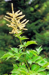 トリアシショウマ (ユキノシタ科) 山地の林内、草原にはえる多年草。茎は 高さ40〜100cm、葉は3回3出複葉、 小葉は長卵形、洋紙質で基部著しく心形、 花序は茎頂につき両性花で、がく片5、 花弁5、雄しべ10、雌しべの花柱は2本、 花柄は果実の時には下を向く。果実の 先端は2裂する。日本名は鳥足升麻で、 茎が丈夫で真直にのび、3つに分かれ 鳥の足に似る。